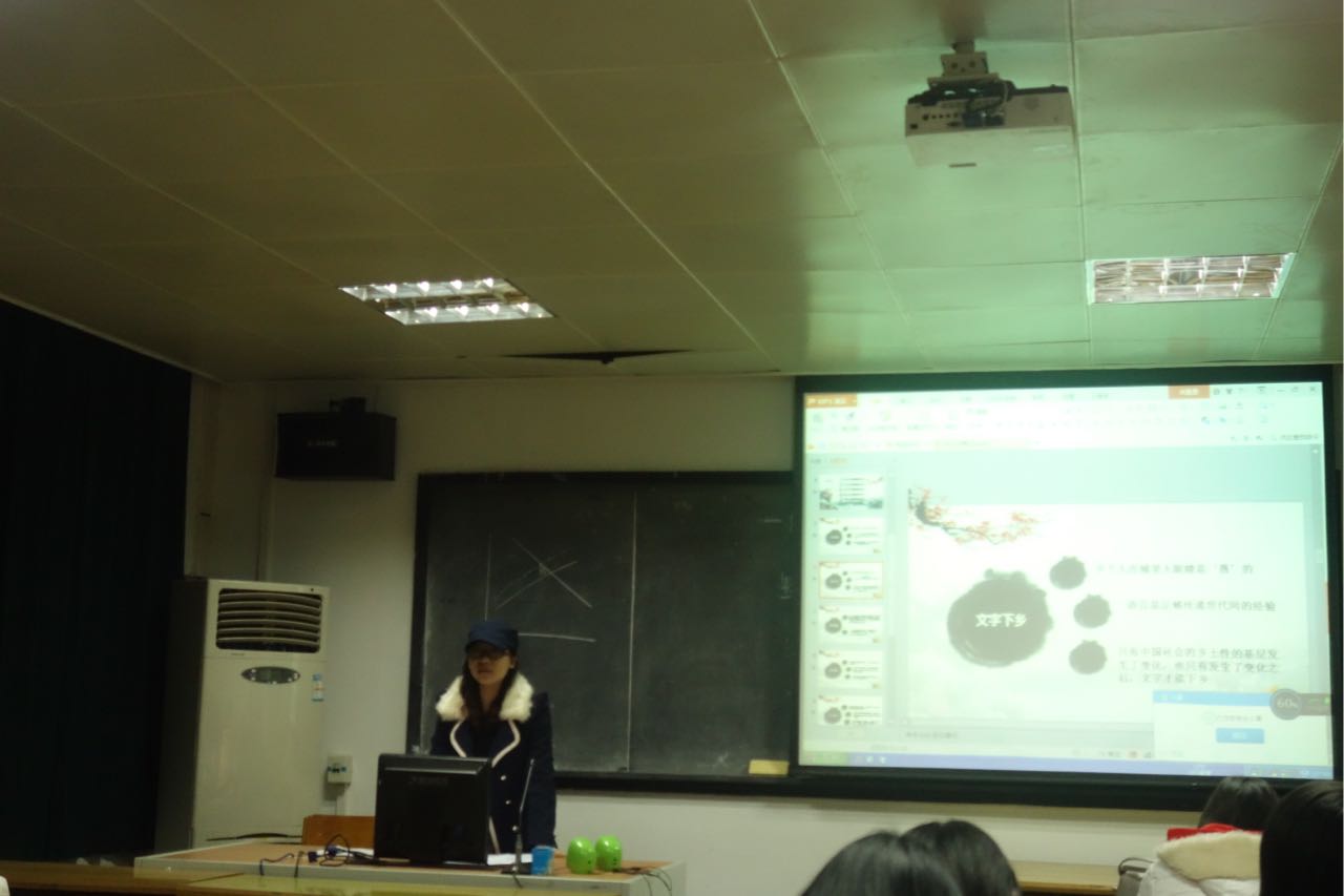 在本次活动中,丁悦,黎萍和张明阳三位同学不约而同选择了费孝通先生的《乡土中国》进行分享。黎萍同学将《乡土中国》的片段与自己的乡土记忆相联系,并对费孝通先生作了详细介绍,言辞之中洋溢着敬佩之情。丁悦同学根据自己的读到见解,对书中所提的“差序格局”等概念作了别致解读,把自己的所思所想向大家娓娓道来。张明阳同学则在前两位的基础上进行补充,但由于时间关系,未能详尽言语便匆匆下台。时间在此时是贪婪的,因它吞噬了所有的细节。