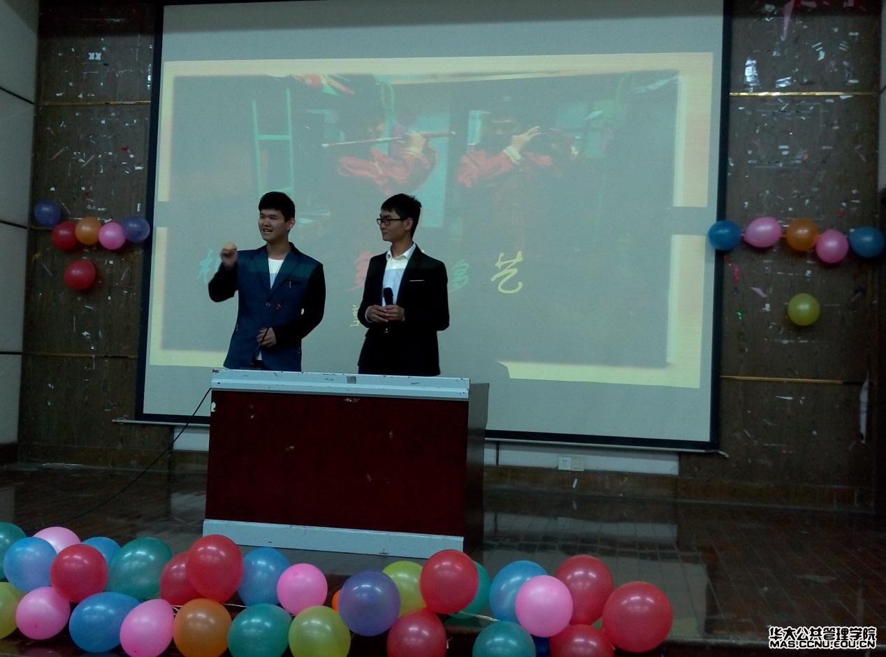 公共管理学院本科生讯(通讯员:郭明园 摄影:刘宽)2015年4月12日晚7点整,公共管理学院2014级寝室文化秀节目表演展在九号楼一楼报告厅举行。此次活动邀请到了公共管理学院党委副书记马新华老师,公共管理学院分团委书记、2012级辅导员王聪老师,2013级、2014级辅导员李立老师,院学生会主席张慧智。
