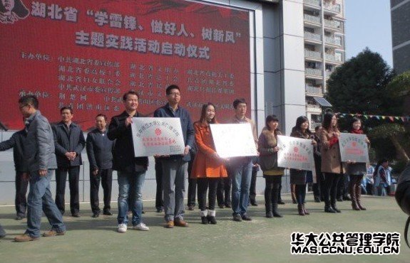 (通讯员:郭慧)3月4日上午10点,公共管理学院王聪老师,参加了在洪山区青菱街红霞社区举行的湖北省“学雷锋、做好人、树新风”主题实践活动启动仪式。