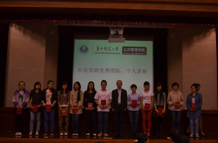 分享交流结束后,主持人闫俊宣布暑期社会时间先进个人、先进集体获奖者并颁发证书,陈书记,马书记以及姚院长分别为先进集体先进个人颁奖。公共管理学院2013年“共筑中国梦,公共服务型”暑期社会实践总结暨表彰大会在阵阵掌声中圆满落幕。