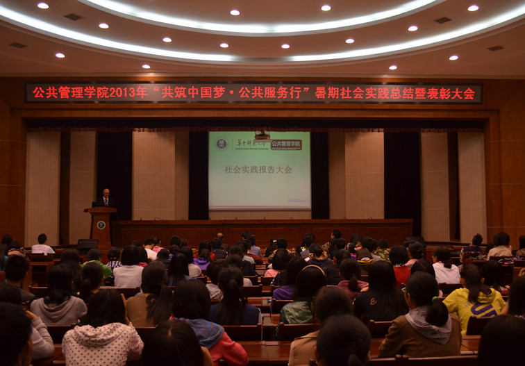 (通讯员 胡辰蕊 摄影 林彦博)9月27日,星期五晚七点,公共管理学院2013年“共筑中国梦,公共服务型”暑期社会实践总结暨表彰大会在科学会堂一楼报告厅举行。与会领导有校团委副书记陈娟,公共管理学院副院长姚锐敏,院党委副书记马新华,院副教授冷向明,团委书记王聪以及辅导员罗采薇。