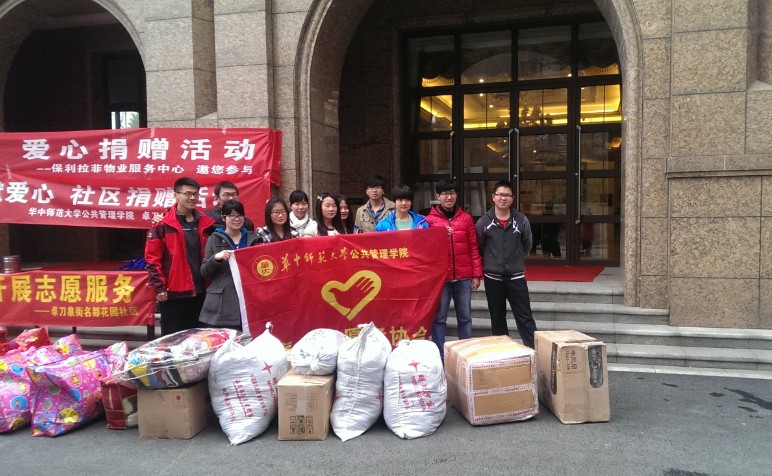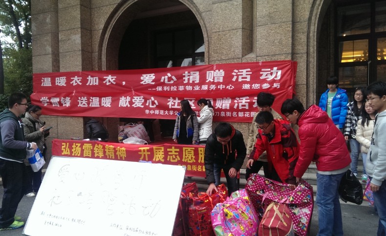 公共管理学院本科生讯(通讯员:宋一琦 摄影:胡艺)3月7日星期五下午3点到5点我院青协4人以及大一9名志愿者在名都花园社区开展志愿活动。此次志愿活动目的是在雷锋月内倡导学雷锋精神,为贫困山区孩子捐衣物献爱心。
