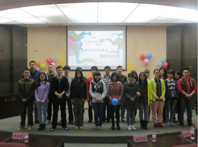 公共管理学院本科生讯(通讯员 李营营 摄影 李营营)2014年3月22日,公共管理学院第六届炫彩艺术节暨寝室文化秀在十号楼报告厅展开。我院团委书记石嵩老师、12级辅导员王聪老师和团委副书记黄祖泰、院团委学生会主席郑宁、院秘书长赵玉兰等院会各部门代表出席了本次活动。