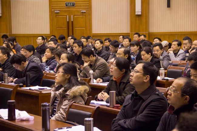 2014年3月13日上午九点,科学会堂一楼报告厅已是座无虚席。原来,来自华中科技大学的哲学教授——欧阳康老师正在为教育部中南班的学员们讲授题为《价值多元化进程中的中华文化建设与民族伟大复兴——民族复兴的文化解读》的精彩课程。欧阳康教授现为华中科技大学哲学研究所所长,兼任文科学报主编、教育部社会科学委员会委员、国际哲学家协会常务理事、湖北省社科联副主席、湖北省哲学学会副会长等。他著有《社会认识论导论》等十余部书,在《中国社会科学》等发表过中英文学术论文230余篇,10余次获教育部和湖北省哲学社会科学优秀成果奖,主持了十余项国家、省部级和国际合作科研项目,数十次出国参与学术交流与合作研究。