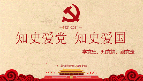 为更好的贯彻落实党中央和习近平总书记关于党史学习教育的重要部署,增强支部成员党性修养,发挥党员模范先锋作用,公共管理学院2020级研究生一支部组织了以“知史爱党、知史爱国”为主题的党史学习教育活动。