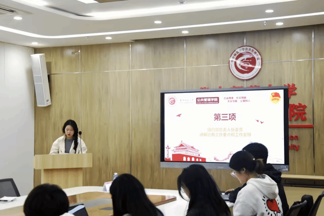 组织部主要负责人张亚萱重点介绍了“百生讲坛”优秀主讲人活动、团日活动优秀案例评选、“五四”表彰和学社衔接相关工作安排,着重指出各项活动的开展应当凸显自身专业特色,将理论学习和实践体验相结合。