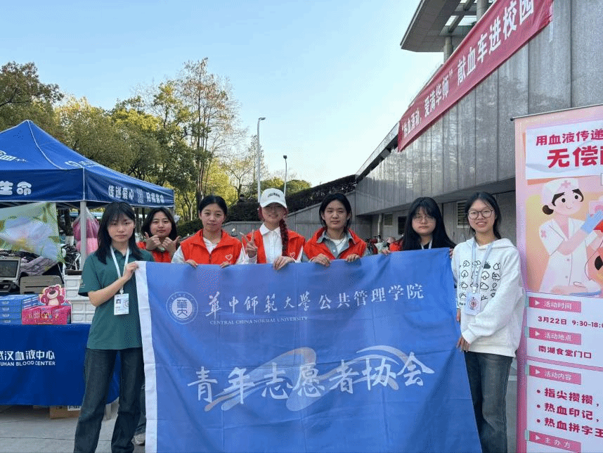 公管在线讯(通讯员 邓雅婷) 为深入贯彻习近平新时代中国特色社会主义思想,弘扬“奉献、友爱、互助、进步”的志愿精神,华中师范大学公共管理学院青年志愿者协会(以下简称“公管青协”)于3月22日在南湖食堂前开展了以“热血涌动,爱满华师”为主题的“献血车进校园”志愿服务活动。本次活动由共青团华中师范大学委员会和武汉血液中心主办,华中师范大学青年志愿者联合会、公管青协承办。