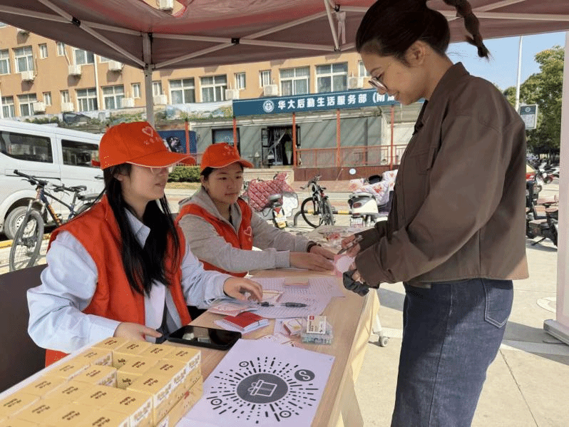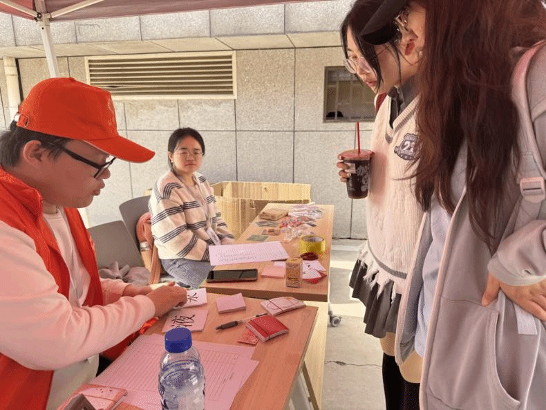 第一组志愿者负责核实“指间攒攒,热血续缘”活动集赞证明。在活动预热阶段,参与活动的同学线上转发活动推文或宣传海报,集齐指定数量的点赞后即可参与抽奖,这种方式也让更多学生了解无偿献血的意义、流程和注意事项。第二组志愿者负责“热血印记,爱心传递”活动和“热血拼字王”活动。同学们不仅在参与游戏的过程中表达了自己对献血者的敬意和心声,还直观地学习了献血相关词汇和知识,有效扩充了自身的献血知识储备。第三组志愿者负责为完成献血的同学打印献血证,分发牛奶、盲盒、玩偶、饼干等礼品。在为献血者打包纪念品时,志愿者们也会提供温暖的关怀,强调注意休息、不要提重物等注意事项。