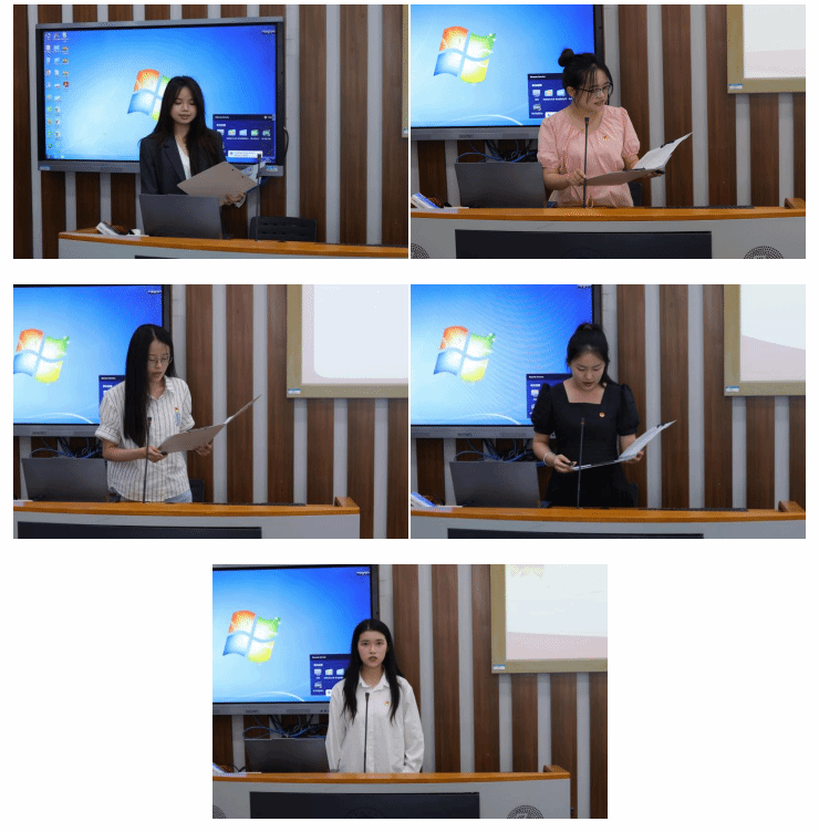 学院第二十四届团委书记处成员张婧怡、莫静薇、石静琪,学生会主席团成员曾严、盛典依次上台作《公共管理学院第二十四届团委、学生会工作工作报告》。参会代表审议通过了《公共管理学院第二十五次学生代表大会总监票人、计票人名单》。