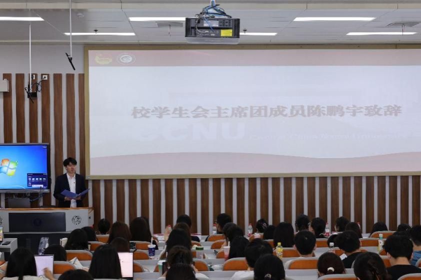 胡一心讲授“榜样引领·青年说”成长故事主题团课。他以“争做志愿者,大爱桂子情”为主题,结合生动的视频素材,分享了自身参与支教、校庆筹备等志愿服务经历。他号召同学们积极投身各类实践中,在服务他人中增知识、长才干。