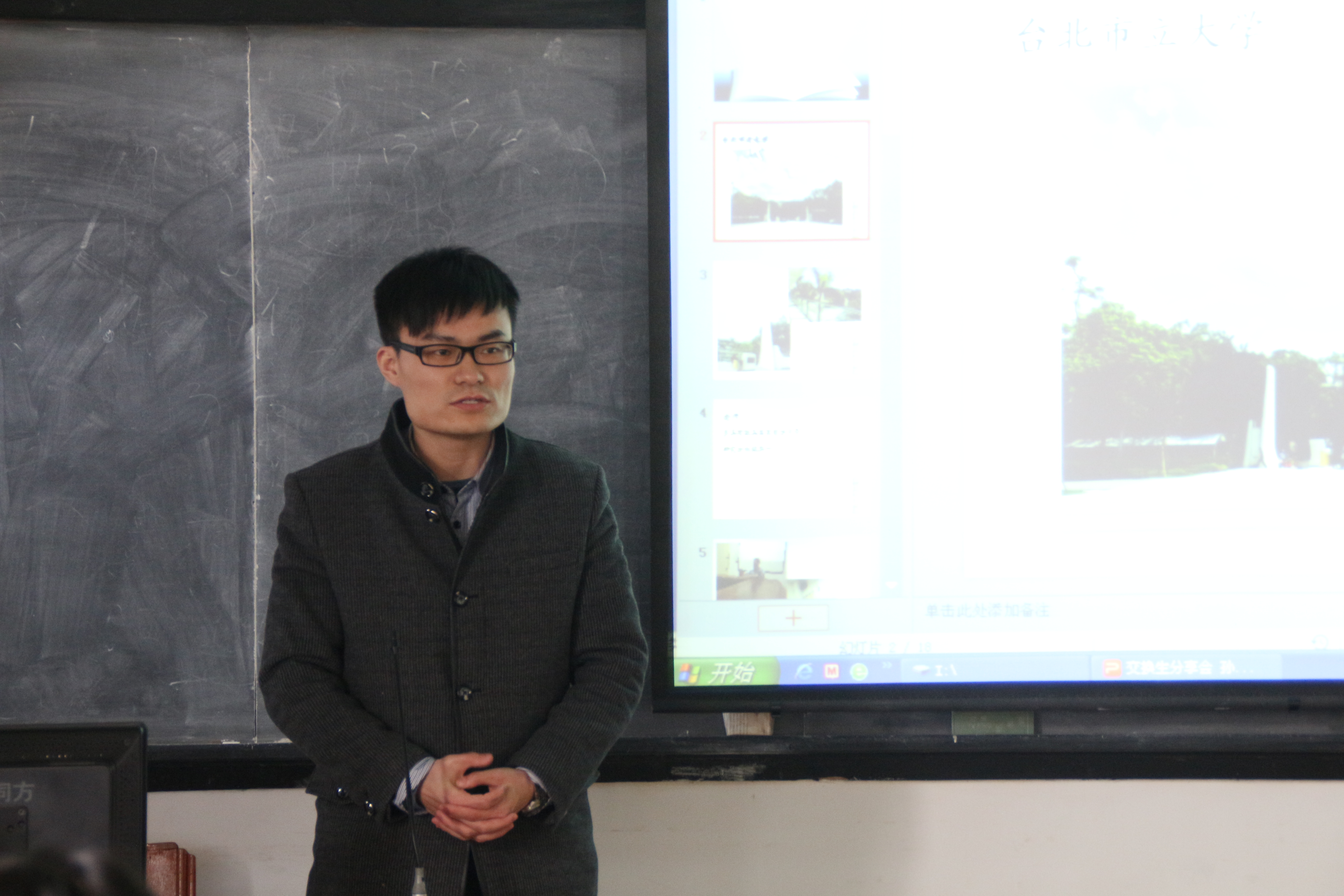 紧接着,我院赴台湾学习的5名交换生代表以图文并茂的形式分享了在中山大学、东海大学、中央大学、台北市立大学的学习和生活经历,并畅谈各自的学习心得与体会,包括交换学校的课程设置与选择、教学模式与管理、自己的学习收获与体会以及注意事项等,多角度展示了台湾的校园生活和美丽的宝岛台湾。他们建议交换生要平衡在台湾学习和娱乐的时间,处理好与本地学生的关系,并就各校特点、课程、食宿等与会者关心的问题进行了互动和解答。