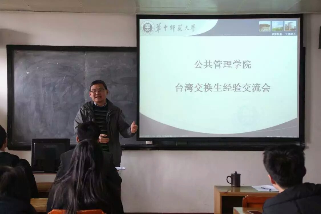 公共管理学院研究生讯(通讯员:徐杰智)2月23日,我院在公共管理学院519会议室举办了台湾交换生经验交流会。院分党委书记李家文、副院长徐增阳,辅导员魏寅和我院赴台已返校交换生代表及全体2016级研究生参加了此次交流会,交流会由学术部副部刘莉主持。