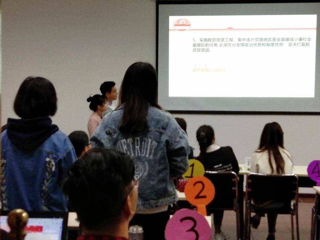 本次决赛分为两个阶段进行,第一阶段“头脑风暴”,各参赛组选手依次从题库中抽取选择和判断题作答,旨在考察同学们对于“两会”内容和精神的理解和把握度。在此阶段,我院参赛选手朱雪芹和张晨都分别进行了积极作答。经过激烈的比拼,斩获了本阶段的领先地位。