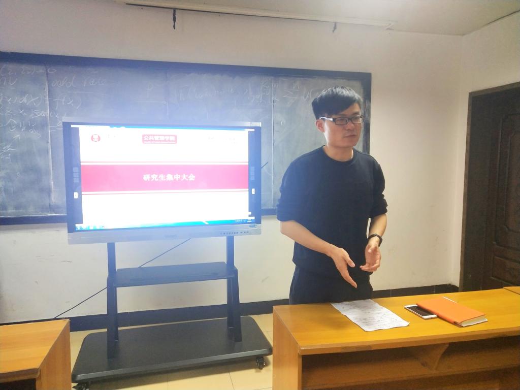 (公管在线讯 通讯员 洪雅咏)2019年4月8日下午五点,公共管理学院2019年第二次研究生集中大会在管院238教室顺利召开。研究生辅导员魏寅、兼职辅导员王晓丹及全体研究生参与此次集中大会。