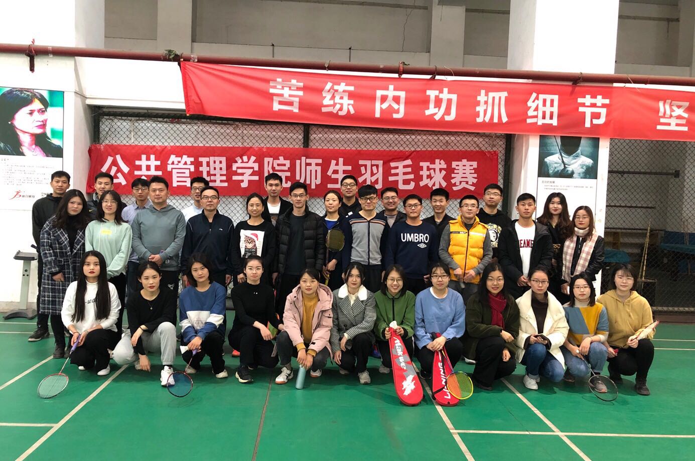公管在线讯(通讯员:石振兴)2019年12月15日上午,为促进公管院师生交流,增进导学关系,提升同学们的运动热情,我院体育部在佑铭体育馆羽毛球馆举办了师生羽毛球比赛。此次比赛吸引30余名选手报名参赛,杨炎轩老师、董明媛老师、匡兵老师、宋明洁老师、欧阳铮老师、魏寅老师与学院研究生参赛同学分成7组进行了男双、女双以及混双三种形式的比赛。