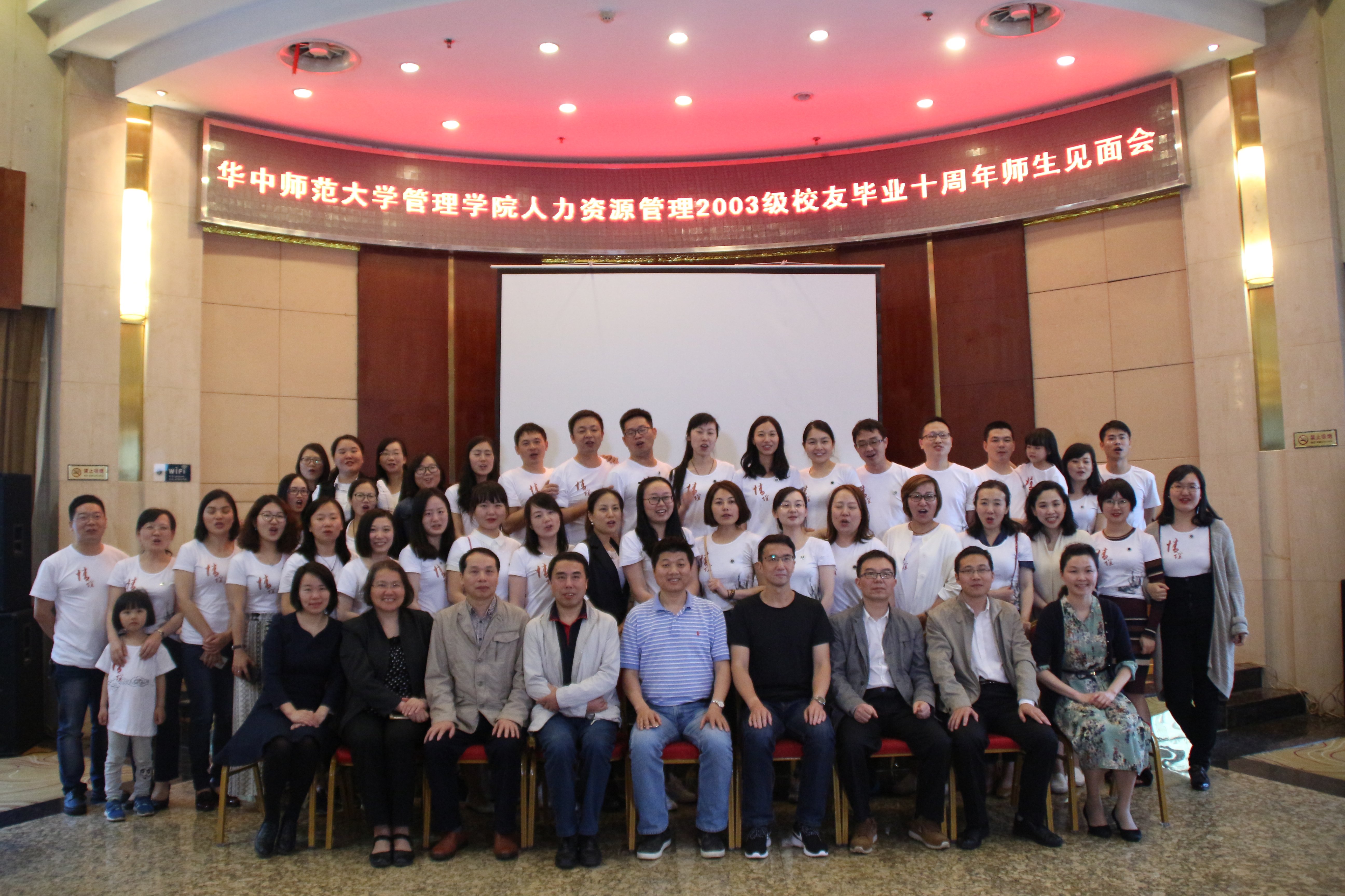 公管在线讯(通讯员 余嫏)光阴变换,十年一瞬。“忆往昔,书生意气同窗数载;看今朝,赤子情怀共聚一堂”,4月30日,管理学院人力资源管理专业2003级四十余位校友再聚桂子山,和师长老友畅忆往事、再叙情谊。下午2时30分,师生座谈会在桂苑宾馆一楼多功能厅如期举行,学校国内合作与校友办公室副主任郭庆,教务处副处长、原辅导员胡中波,公共管理学院院长卢新海,副院长陈雪玲,学院党委副书记曾艳及尤光付、谌虹、费军、舒晓兵、杨炎轩、林志军等各位老师参加了此次座谈会。