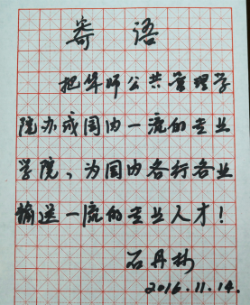 在他的眼中里,成为官员是为了更好的服务于人民,而非领导人民。他用经济学者的客观性告诉我们,学校的性质就决定了学生的定位,师范大学所忠实的博雅教育,最不可缺的就是师资的性质。“我们所要培养的是培训员工的师资人才,学生的实习不应只着眼于政府,而是要深入公共部门和企业人事部门”。石老师早已潜移默化地把“求实创新,立德树人”这八个大字刻于心中,记于脑中,说于口中。