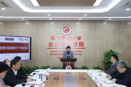 公管在线讯(通讯员 周小燕 蓝琳珊)12月23日上午,公共管理学院教师干部会议在南湖综合楼9002会议室举行。校长郝芳华、校党委副书记查道林、副校长李鸿飞,党委组织部负责同志和学院全体教职工参会。会议由副校长李鸿飞主持。
