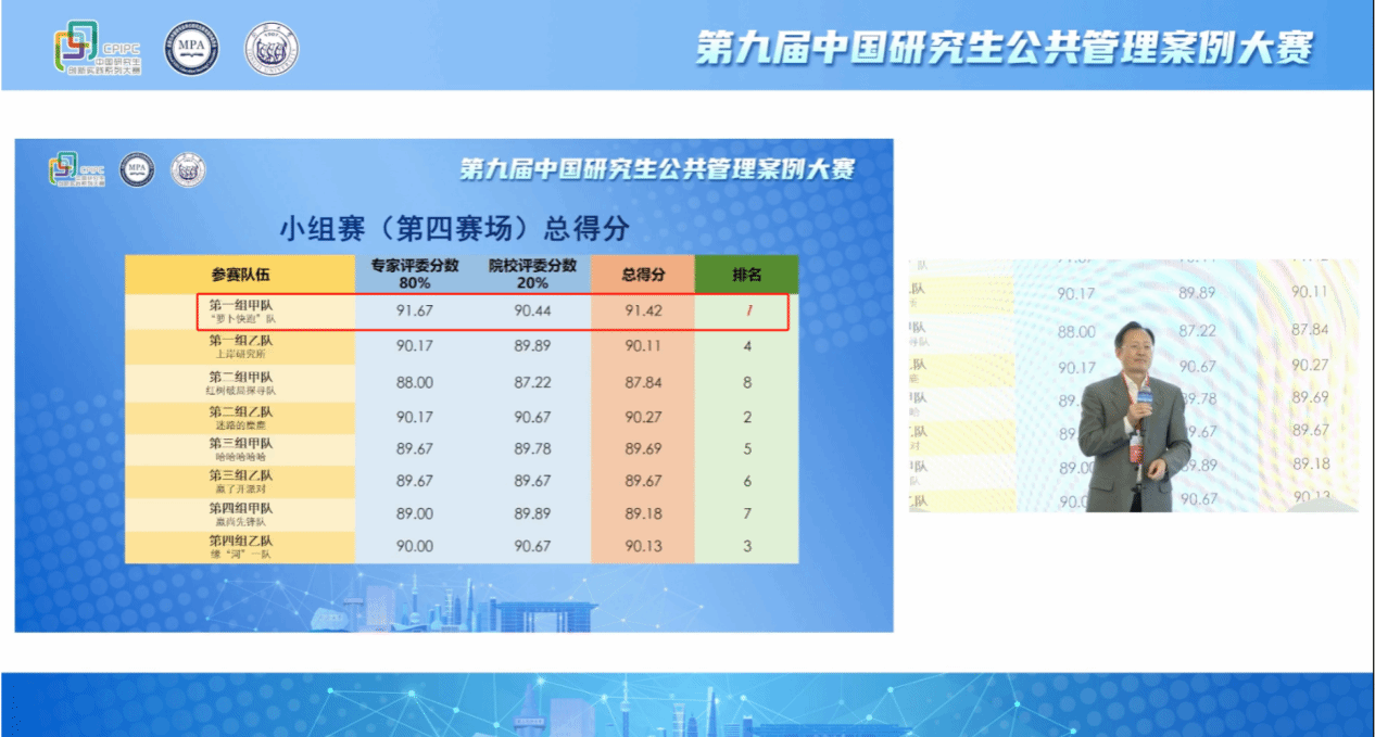 决赛采取对抗赛制,32支队伍经过抽签分成四个小组,并进行组内两两PK,先后就我方案例和对方案例进行分析和辩论,由专家评委和院校现场打分。小组赛中,“萝卜快跑队”在出场次序并不理想的情况下,经过激烈角逐获得小组第1名,成功闯入四强总决赛,最终斩获一等奖最高荣誉。魏来、余成龙、冷向明三位指导老师获评大赛“最佳指导教师”,熊伊婷同学因出色的现场表现,成功当选本届大赛决赛“最有价值队员”。公共管理学院另有4支参赛队伍成功进入全国参赛案例排名前20%,获得全国“优秀奖”,并获“中国专业学位案例中心公共管理案例库”入库资格。