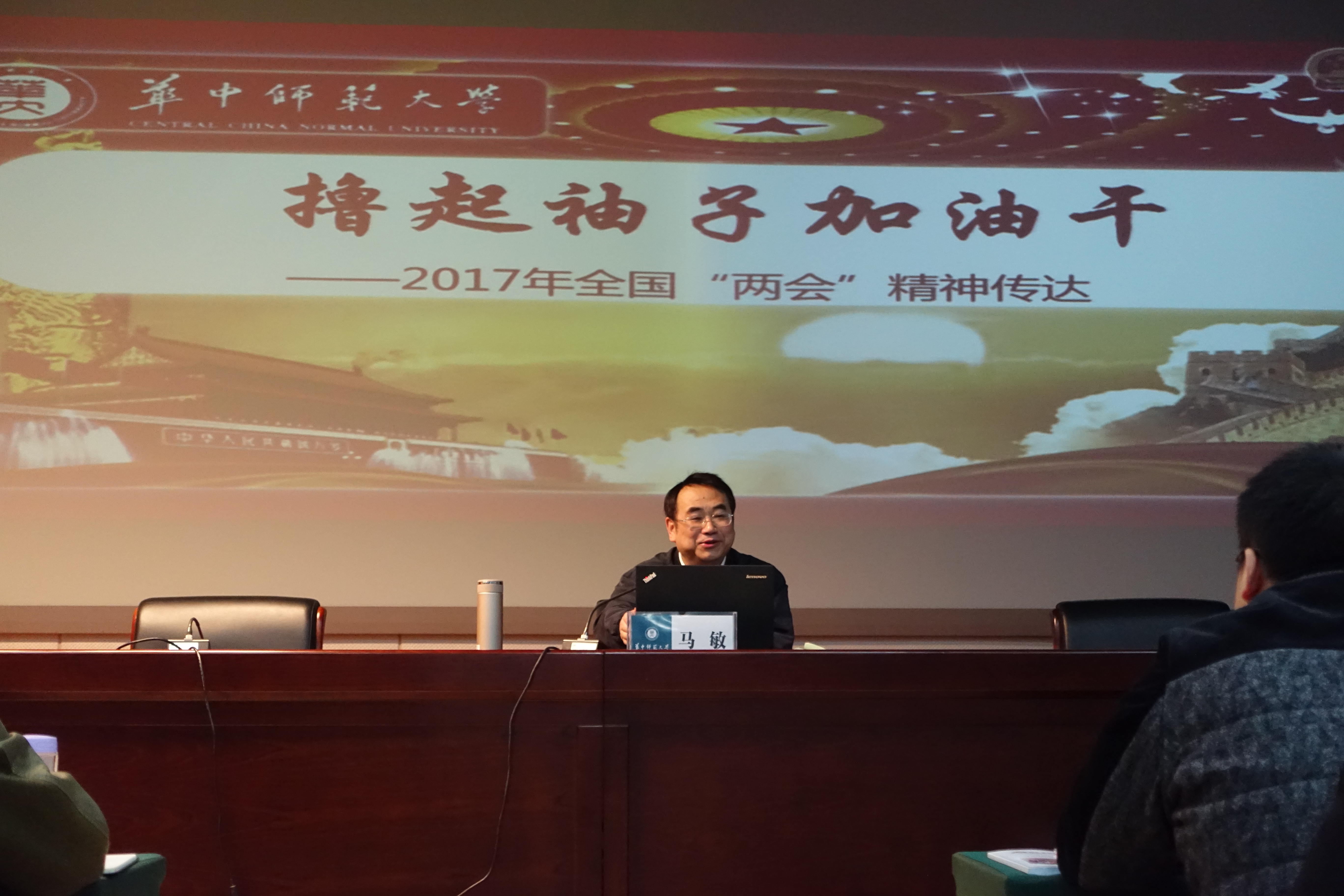 公管在线讯(通讯员:易亚兰)3月27日上午,全国政协委员、原校党委书记马敏教授为我院教职工、教育部中南地区高校第71期中层干部培训班和湖北省第69期省直机关处级干部进修班学员做了题为“撸起袖子加油干——2017年全国‘两会’精神传达”的报告。马敏教授结合个人参政议政的经历概要介绍了本次政协会议的基本情况,深入传达了今年“两会”精神,同时也谈到了自己身为政协委员的几点感悟。