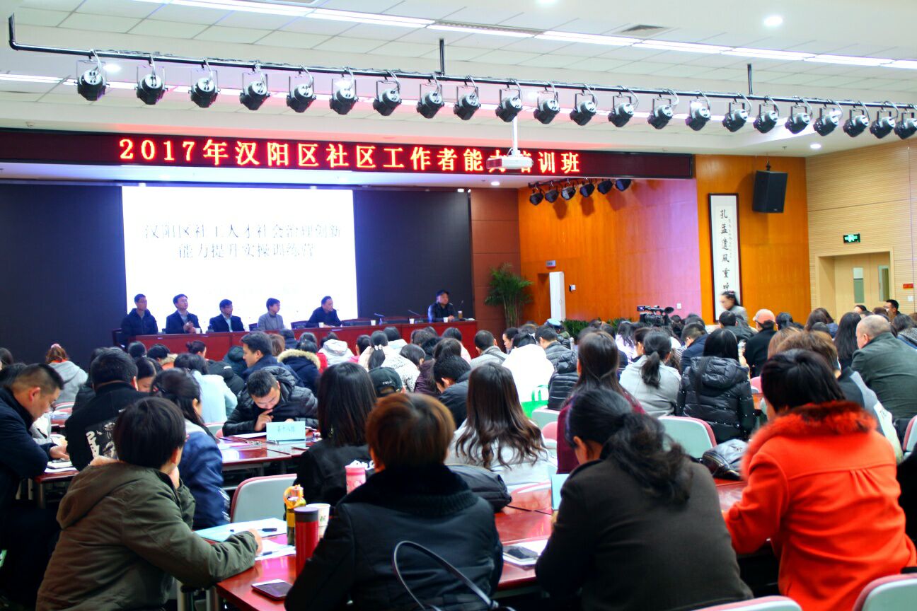 公管在线讯(通讯员魏寅 朱淑娟)3月14日,武汉市汉阳区社区工作者能力培训班在汉阳区社区福利院开幕。此次培训为期3天,由汉阳区民政局主办,我院周凤华、孙永勇、冷向明、张奎力、王超群等老师应邀为培训班授课。培训期间,每天有240位学员参加培训,共有720位学员参加了本次关于社工人才社会治理创新能力的培训课程。