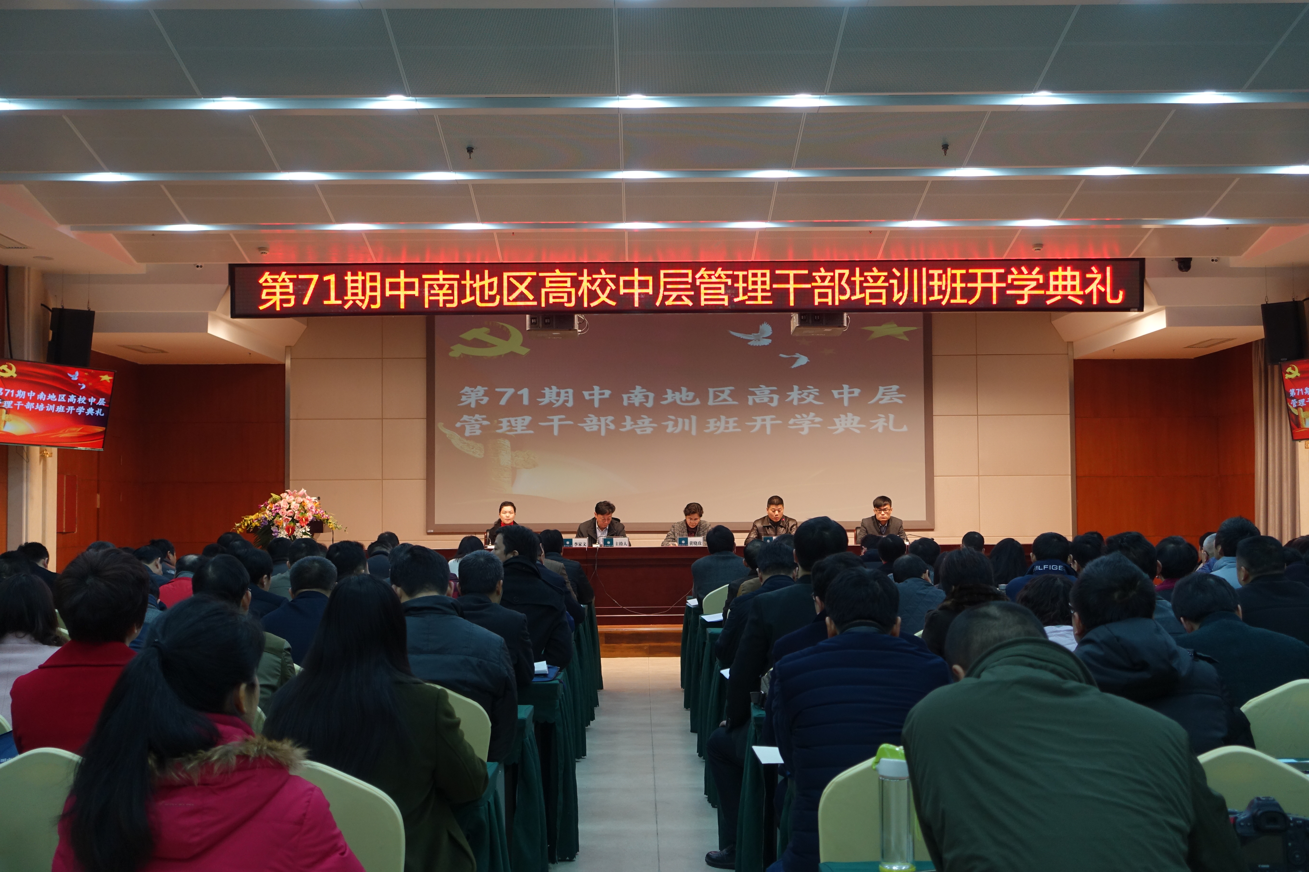 公管在线讯(通讯员 李慧慧 张起帆)2月21日上午,教育部中南地区第71期高校中层管理干部培训班在我校管理教育综合楼多功能厅举行。华中师范大学党委副书记、纪委书记、教育部中南教育管理干部培训中心主任黄晓玫、公共管理学院负责人出席典礼,典礼由公共管理学院分党委书记李家文主持。