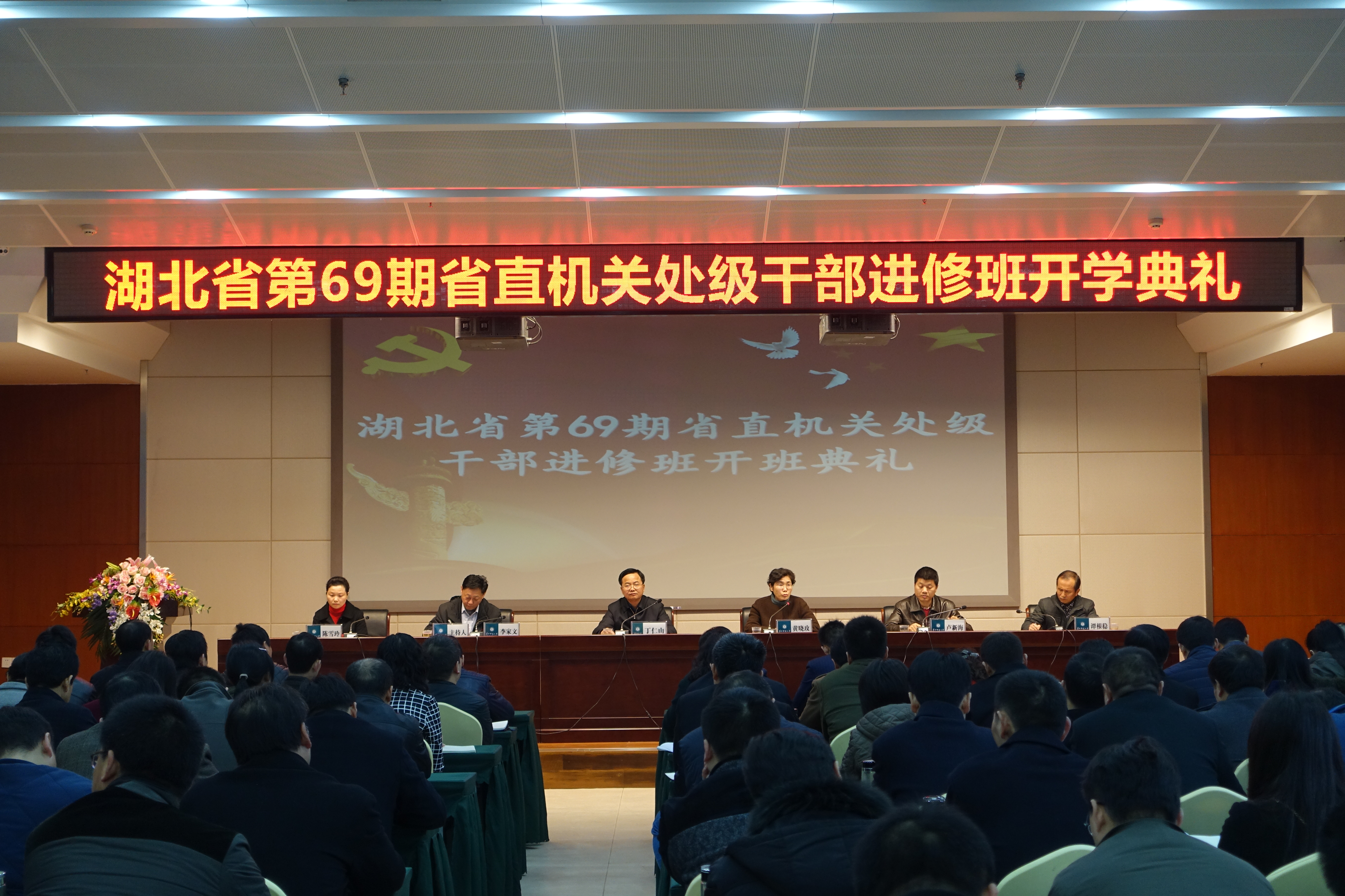 公管在线讯(通讯员张起帆)2月15日上午9点,湖北省第69期省直机关处级干部进修班开学典礼在我校管理教育综合大楼举行。校党委副书记黄晓玫、省委组织部干部教育处处长丁仁山等出席,典礼由公共管理学院分党委书记李家文主持。