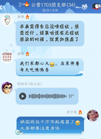 1903班班主任张祚老师别出心裁的组织召开了“窗外”网络主题班会。张老师带领学生完成与疫情有关的调查问卷,接龙分享自己目前的生活状况,并晒出在家乡向窗外眺望的风景,以表达自己对当前形势的美好祝愿,疏导学生以良好心态直面疫情。