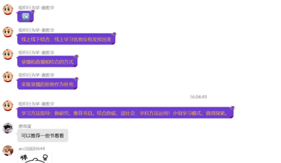 1901班班主任谢胜华老师,提出应采取线上线下相互结合的方式进行学习,以直播教学为主,录播教学为辅,充分发挥网络授课的优势。谢老师还鼓励同学们旁听其他年级的课程,或者利用MOOC平台进行深度学习。