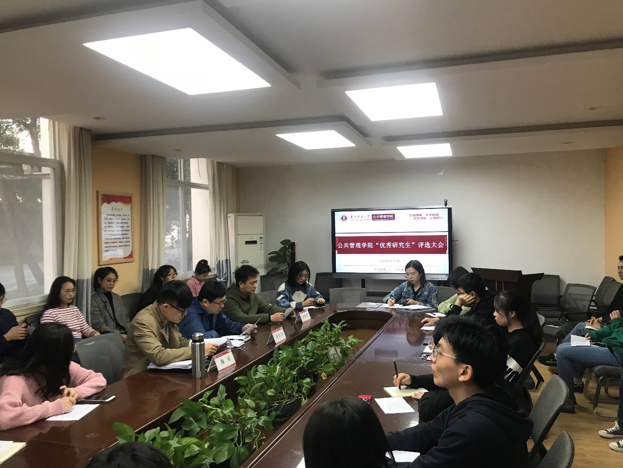 公管在线讯(通讯员:乔杰)为表彰先进、树立榜样,11月4日下午,我院于二楼会议室召开了优秀研究生评选会,学院党务办公室主任奠红兵、研究生教学办公室欧阳铮出席大会,会议由辅导员魏寅主持,部分研二、研三同学出席评选会并担任评委。