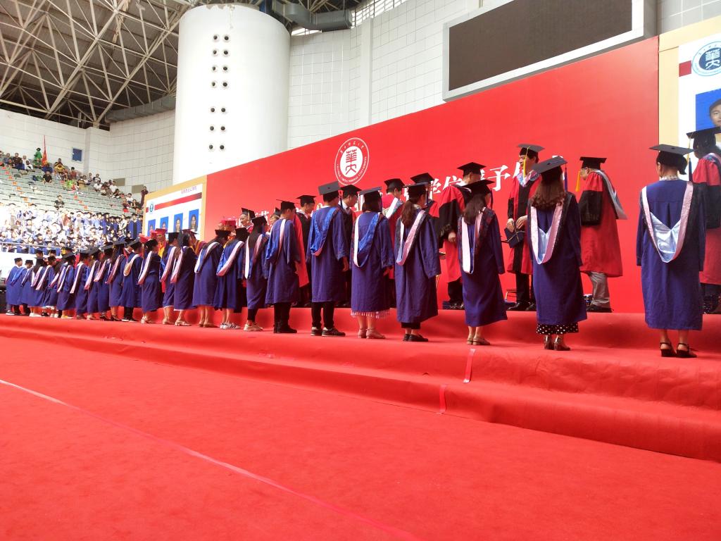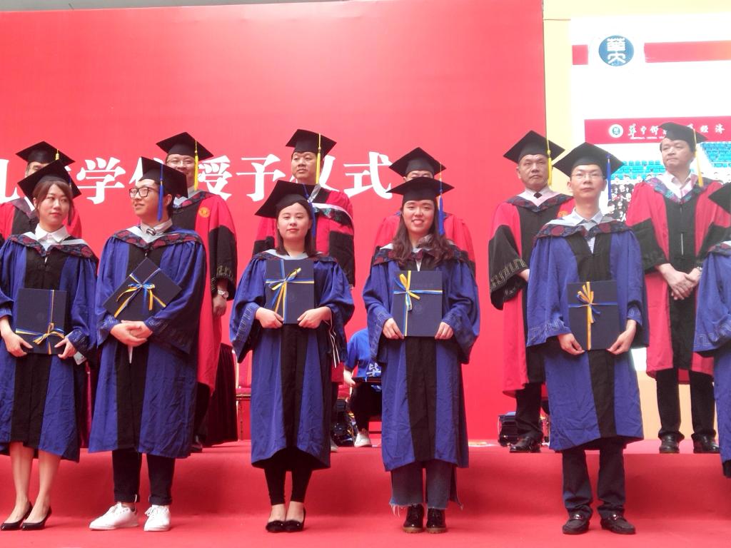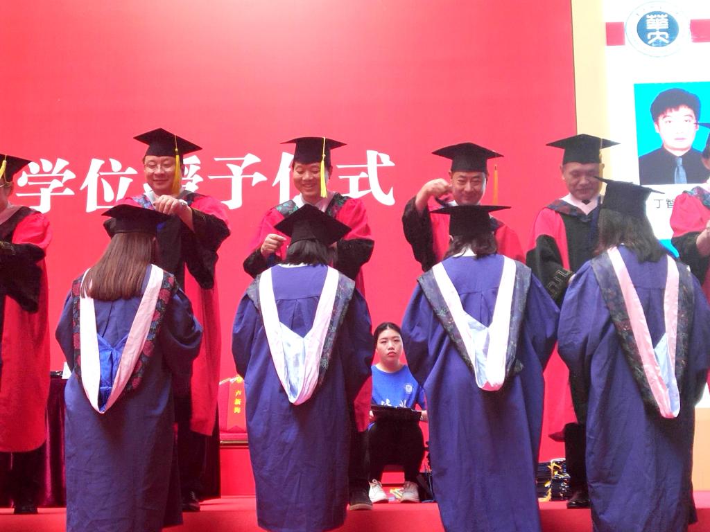 讲话环节过后,进行了隆重的学位授予仪式,各学院研究生依次上台,我院为第九个出场,顺利完成学位授予仪式,并与导师团领导和老师合影留念。