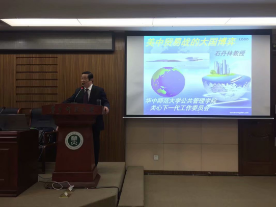 公管在线讯(通讯员 涂力尹)12月29日下午,公共管理学院关工委主任石丹林教授在逸夫国际会议中心为少数民族预科学生就中美贸易摩擦问题开展了一次别开生面的讲座。少数民族预科班全体学生聆听了讲座。