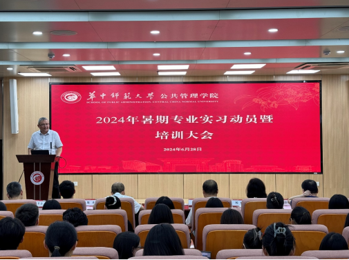 公管在线讯(通讯员:范菲菲 余佳仪)6月28日,公共管理学院2021级本科生专业实习动员暨培训大会于南湖综合楼8001会议室举行。学院党委书记揭辉、院长徐增阳、正处职组织员杨帆等领导及实习指导教师出席,全体2021级本科生参会。大会由副院长周凤华主持。
