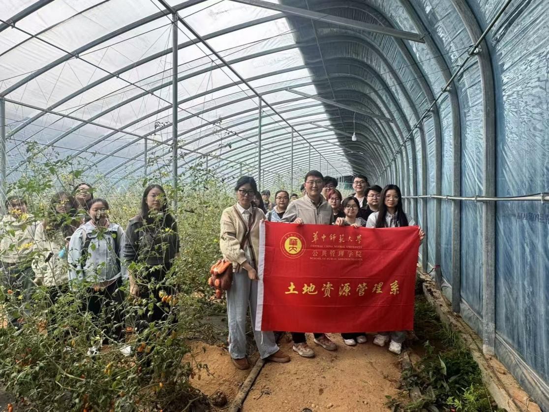 随后,师生一行走进专业试验田——小番茄大棚种植基地,实地观摩设施农业实景,结合地貌特征深入讲解该类土地类型的划分标准与调研要点,使抽象理论转化为直观认知。