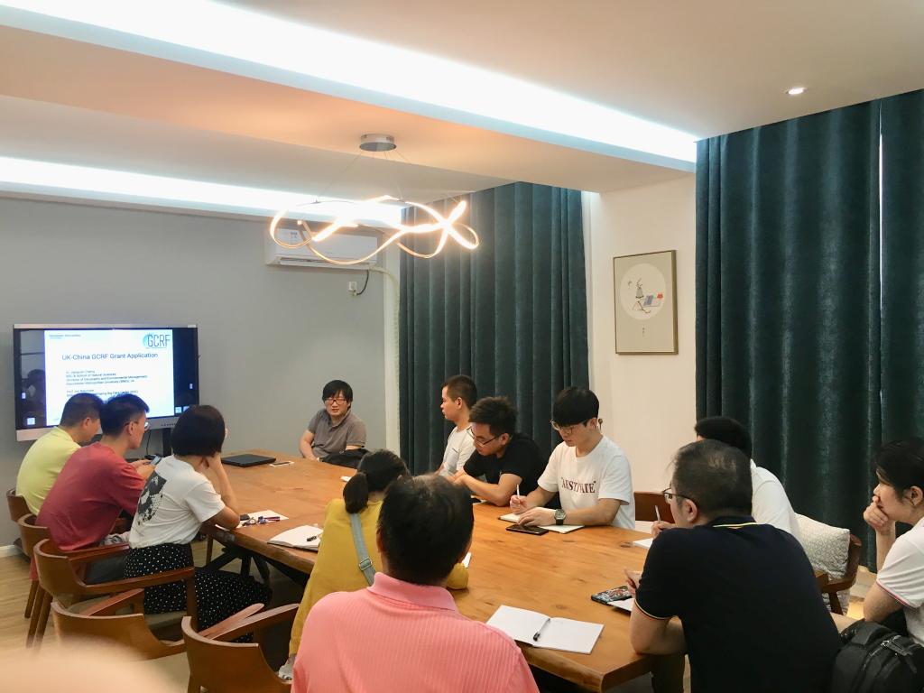 程建权教授首先介绍了英国全球挑战研究基金(Global Challenge Research Fund,GCRF)的项目形式、规模、要求以及GCRF项目书的格式、评价标准、申请过程,随后,程建权教授分析了和国内高校联合申请GCRF的可能性和意义,并和在场教师探讨了学院老师关注的相关研究热点如何和GCRF对接。代先华教授、银超慧老师等也就所关心的问题与程教授进行了交流。