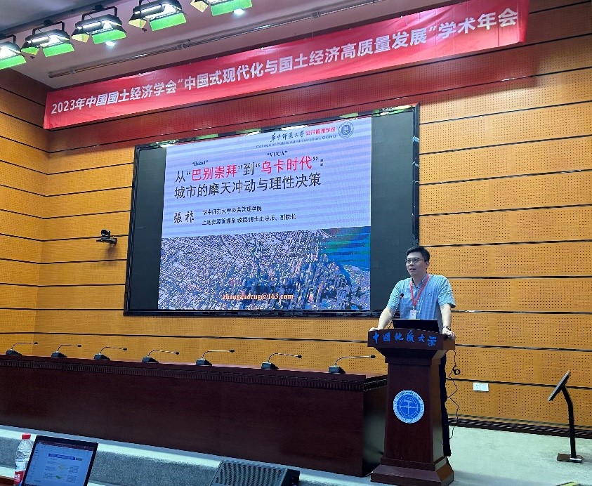 公管在线讯(通讯员 王哲)2023年7月2日,中国国土经济学会学术年会在中国地质大学(武汉)举办。全国各地国土规划管理领域的专家学者,围绕“中国式现代化与国土经济高质量发展”议题,展开了精彩纷呈的专题研讨。我院张祚教授、张路副教授、刘超博士及博士生龚哲、宋湘湘和王哲应邀参加。