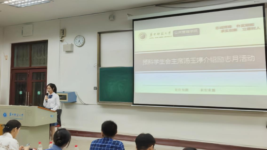 预科学生会主席汤玉婷介绍励志月教育系列活动内容