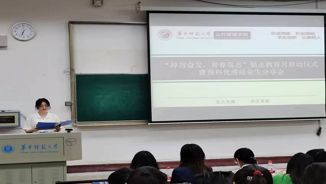 华大公管讯(通讯员:祁嘉敏)4月8日晚,华中师范大学少数民族预科(以下简称预科)“踔厉奋发 青春笃志”励志教育月启动仪式暨“青春是用来奋斗的”预科优秀学生经验分享会在七号楼7401教室顺利举行。公共管理学院党委副书记曾艳、党委学生工作部民族事务办公室美合日姑丽、少数民族预科辅导员李敏琳、一班班主任杨亚黎、二班班主任秦凯琛,以及预科优秀结业生潮乐门、陆国龙出席此次活动。2021级预科全体学生参加此次活动。活动由预科团支部书记黄诗语主持。