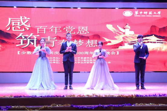 在党史学习汇报会结束后,由校党委学生工作部主办、少数民族预科班承办、公共管理学院研究生会承办的庆祝建党100周年主题晚会顺利举行。晚会围绕“峥嵘岁月催奋进”“愿受长缨为复兴”“风正扬帆再启航”三个板块,通过呈现思想内涵深厚、育人元素丰富、形式青春活泼的精彩节目教育引导全体同学明初心、担使命,营造了温馨有爱、勤学砺行、爱国奋进的文化氛围,引导学生进一步坚定“听党话、跟党走”的信念,积极学习党史并传承党的红色精神,将此融入生活,不断提升自我,以更好的姿态迎接未来。