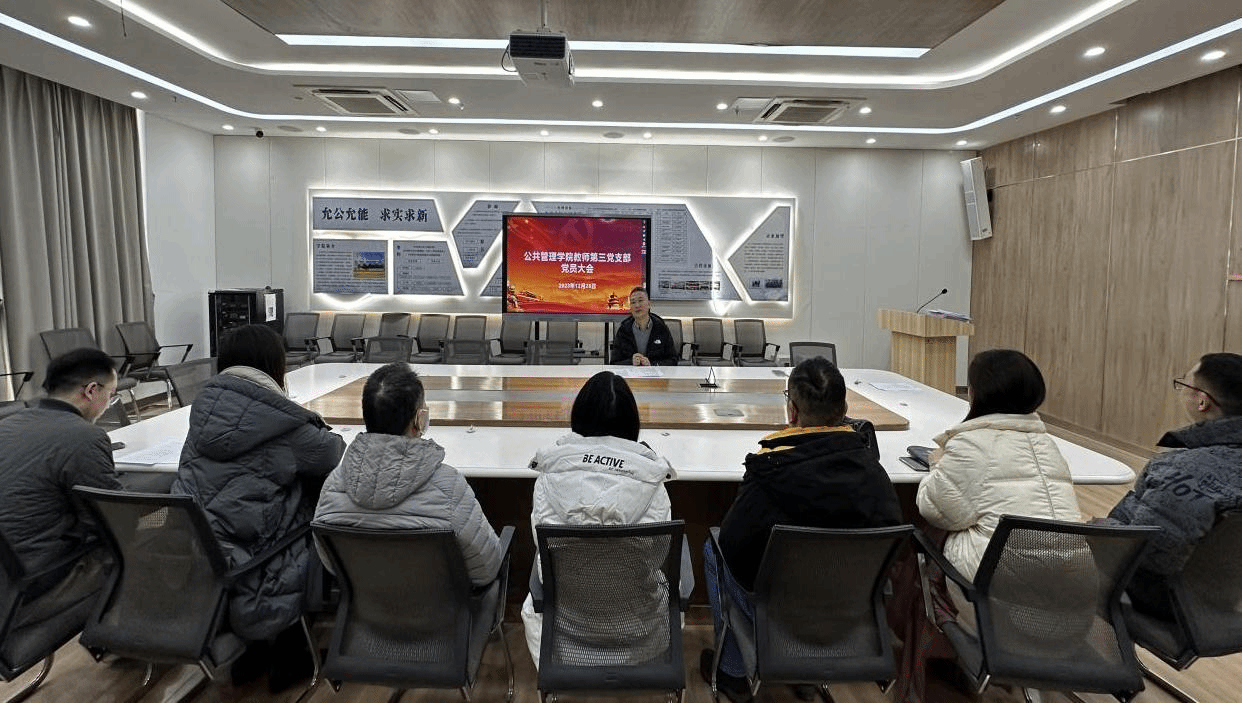 华大公管讯(通讯员:昌琪)在学院党委的领导和指导下,在全体党员的共同努力下,经过充分酝酿、认真筹备,2023年12月28日上午,公共管理学院教师第三党支部在南湖综合楼9002会议室召开了党员大会,顺利完成换届选举工作。此次党员大会的主要议程是听取并审议上一届党支部工作报告并选举产生新一届支部委员会委员。