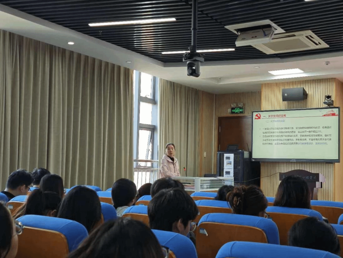 培训期间,公共管理学院正处职组织员杨帆、公共管理学院党委副书记肖微分别进行了专题授课。杨帆重点解读党的二十届三中全会精神,深入阐释会议的主题,进一步全面深化改革的总目标、进一步全面深化改革的重要性和必要性、进一步全面深化改革的原则、重大举措和根本保证。强调要深入贯彻全会精神,以钉钉子精神抓好改革,为中国式现代化提供强大动力和制度保障。肖微系统讲授了党组织设置及命名规范、党员发展基本步骤、党员教育管理的相关要求、党组织生活的具体内容、党支部换届的流程与规范等,帮助同学们理解基础党务知识,明晰工作实践要求,切实提升党务工作能力。