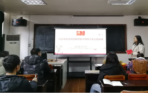 (公管在线讯 通讯员:徐碧珩)12月24日,我院研1802党支部在院319教室召开了2018年度书记讲党课学习会。支部书记余乐佳同志讲党课的主题是“习近平总书记在庆祝改革开放40周年大会上讲话的重要内容及精神”。