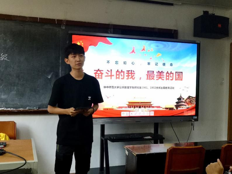 首先,各位党员齐唱了歌曲《我和我的祖国》,歌声使会议气氛高涨,学习气氛浓厚。随后,张欣欣同志带领大家学习了《习总书记在庆祝中华人民共和国成立70周年大会上的讲话》。此次重要讲话在广大知识分子、青年学生和各地基层干部群众中引起热烈反响。大家纷纷表示,要以砥砺奋进的精神状态,奋斗建功新时代,不断创造新的历史伟业。紧接着,张欣欣同志带领各位党员学习了”不忘初心,牢记使命“论述摘编第一章,并对其重点及要点进行了强调和总结,并对接下来的学习进程进行了初步规划和安排。