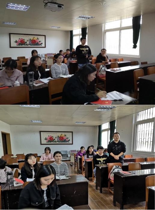 最后开展的是以“凝心铸师魂,立德育新人”为主题的党日活动。曾祯同志和田巧丽同志共同担任主持。其中,曾祯同志以习近平总书记在教师节的重要讲话引入主题,并向大家介绍分享了教育系统的先进集体和先进个人代表事例,如交通大学西迁老教授事迹,以及西迁精神等。