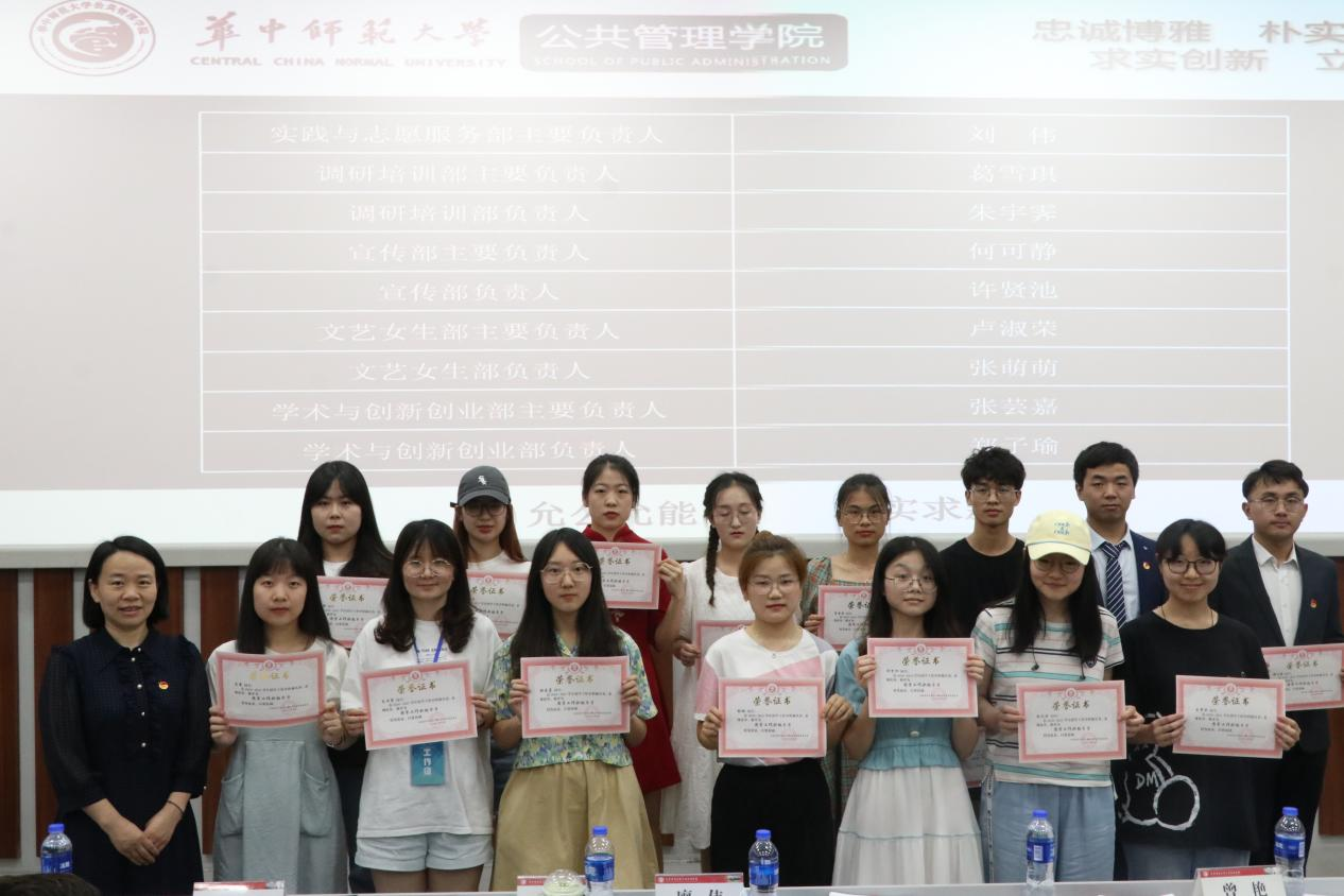 华大公管讯(通讯员 牛天琦 冯鑫 吴佳澍)2021年6月6日晚,华中师范大学公共管理学院第二十届团委学生会述职表彰暨换届选举学生代表大会于南湖综合楼N327顺利举行。学院党委副书记曾艳、团委书记佐一男、团委副书记廖伟受邀出席会议,第二十届团委学生会主席团成员及2019、2020级全体本科生到场参加。会议由办公室主要负责人朱偌逸主持。