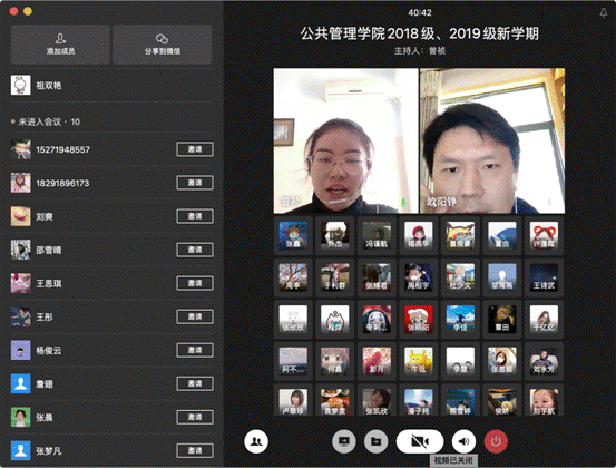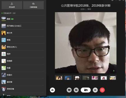 接着,研究生教学管理办主任欧阳铮对学院线上授课和开学后教学安排的有关情况进行了说明,要求大家按时参加已开设的线上课程的学习,并主动参与导师的课题研究,充分利用各种免费网络数据库等学习资源开展自学活动。对于尚未开设的课程,开学后学院研究生教学管理办公室将做好教学安排,他提醒大家提前做好准备,珍惜学习时光,遵守校纪校规,安排好居家学习时间。