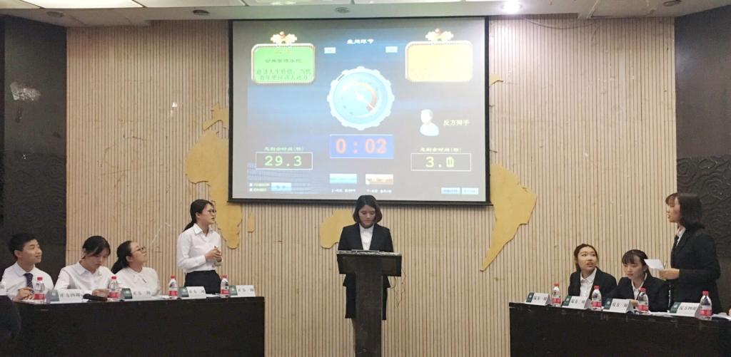 对战环节中,一辩开篇立论,沉着冷静;二辩灵活机智、脉络清晰。对战双方进行一对一攻辩,相互提出尖锐问题,比赛的气氛渐渐升温;自由辩论过程中,辩手们引经据典、旁征博引,运用大量的理论依据,把整场辩论赛引入高潮。尤其是我院辩手,慷慨陈词、言辞激昂,博得了观众的阵阵掌声。总结陈词之后,评委们根据每个辩手的表现及整组的配合进行点评,辩手们虚心接受意见和建议。主持人对整场比赛进行总结之后,本次比赛圆满结束。