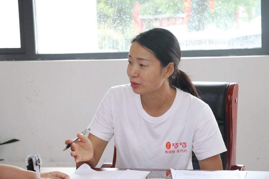 7月10日下午,实践队对全国优秀团干、“巧巧工作室”的发起人、茅圻村村支部委员余巧进行了深度访谈。在访谈过程中,余巧详细介绍了工作室的成立和发展过程、工作室的总体架构和运行模式。听了余巧的介绍,实践队员们对“巧巧工作室”的基层社会治理工作经验有了更深刻的认识。