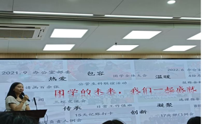 开班典礼后,刘一涵为学员们带来理想信念主题教育专题课程——“我为什么热爱公管团学”,她提出团学就是一群志同道合的人聚在一起做喜欢做的事,是一个有活力和凝聚力的组织。她强调团学干部应具备基本学生骨干素养,培养八大意识,要平衡学习与工作、成绩与付出、热爱与敬畏三对关系,努力成长为一名合格的优秀团干。