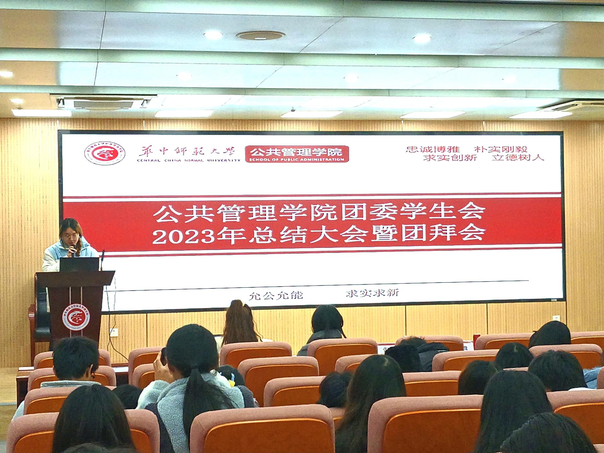 华大公管讯(通讯员 林婷婷)2023年12月29日晚,华中师范大学公共管理学院第二十三届团委、学生会(以下简称“公管团学”)工作总结大会暨团拜会在南湖综合楼N8001举办。公管团学全体成员参加,活动由办公室主要负责人曾严主持。